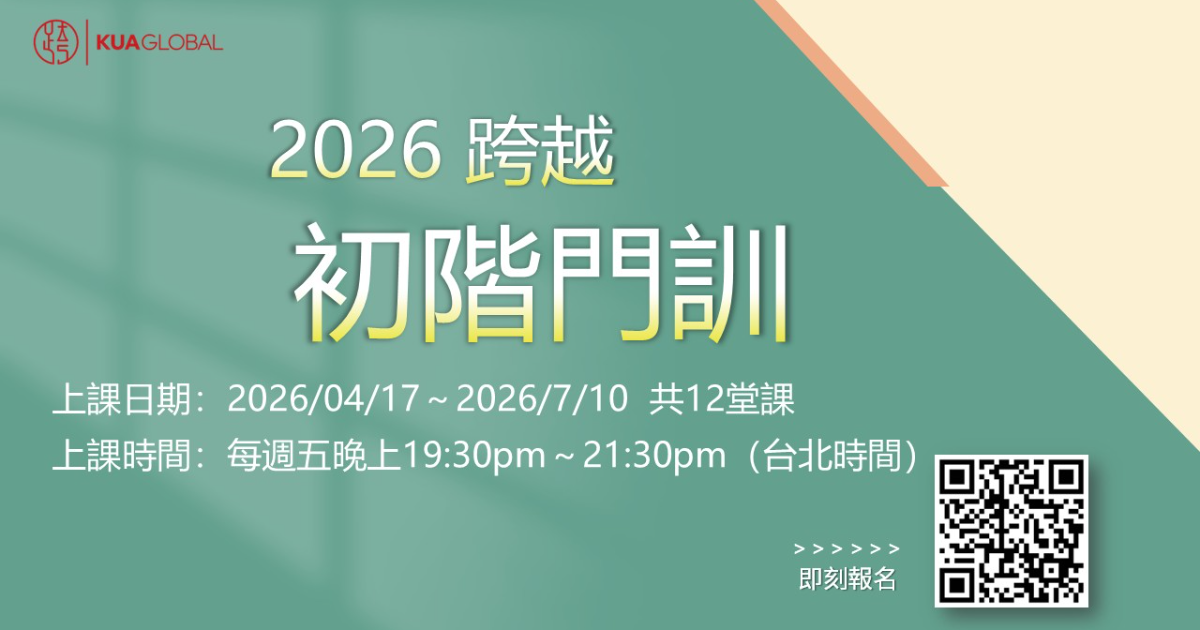 • 本課程為收費課程,請您務必於繳費期限內完成繳費才算報名成功。本課程為線上課程,完成報名者將於4/10後收到課程連結通知,請務必留意您的email信箱,如未收到通知,請來信service@kuaglobal.org 。